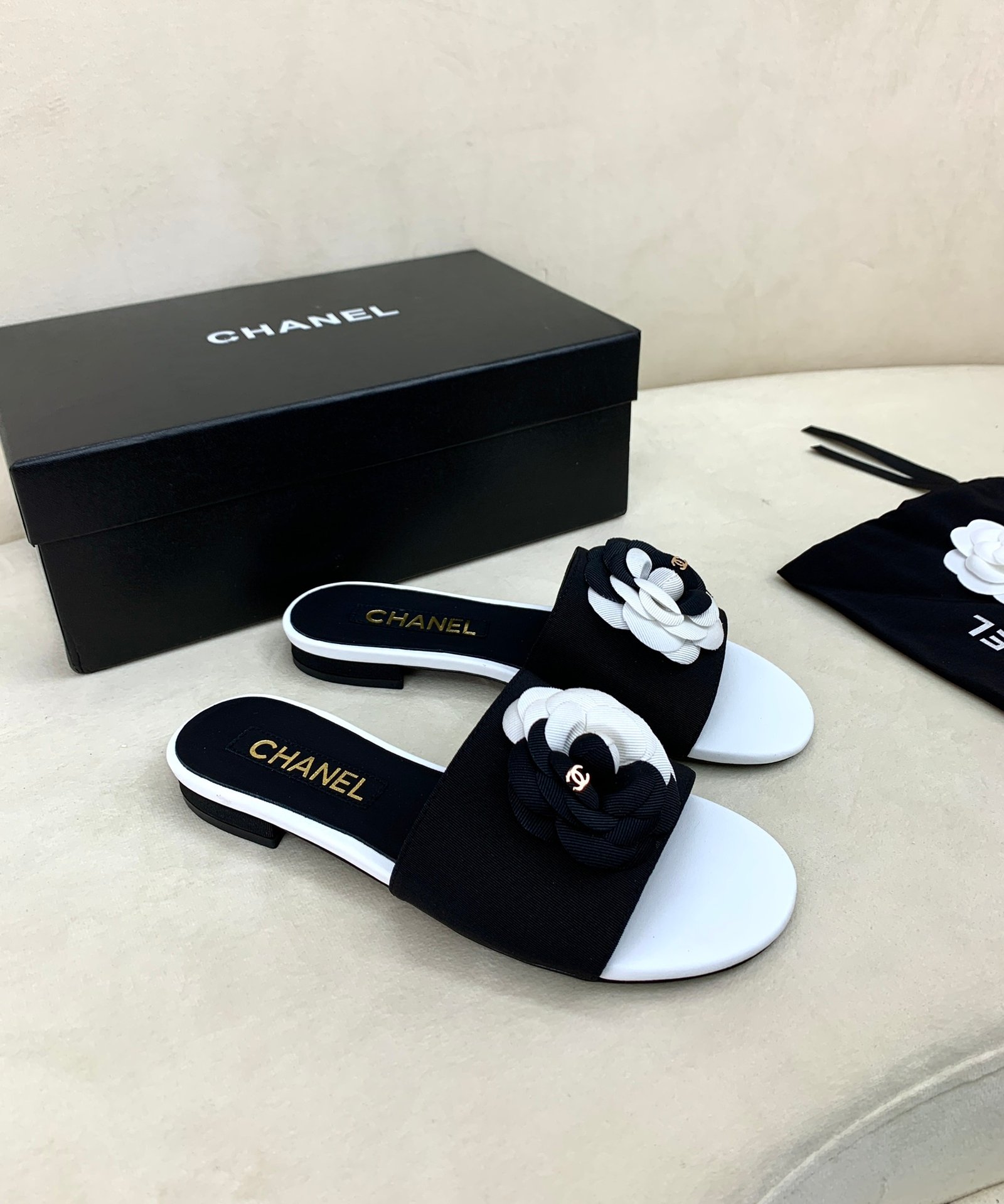 CH@NEL SLINGBACKS GOATSKIN & GROSGRAIN BLACK G45509